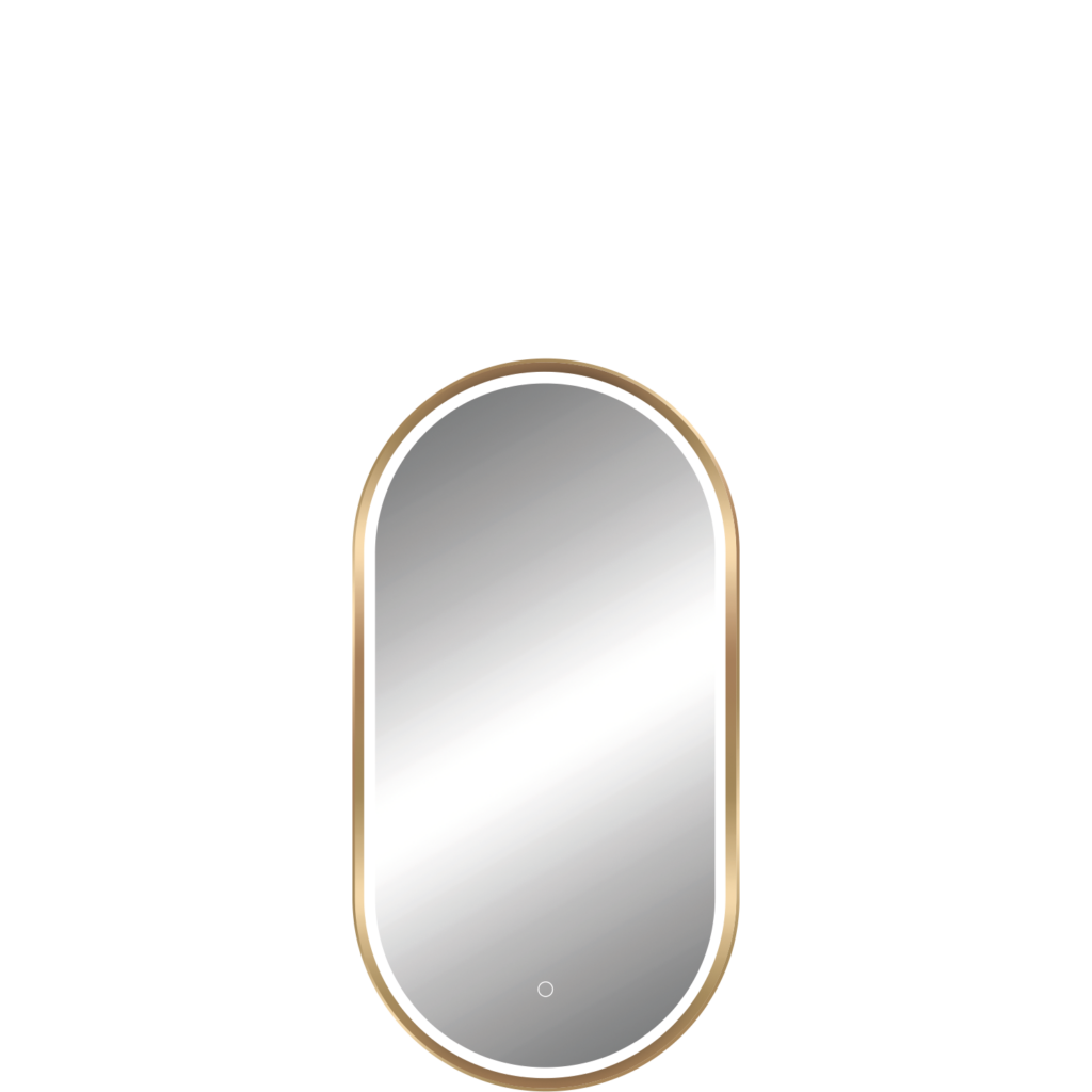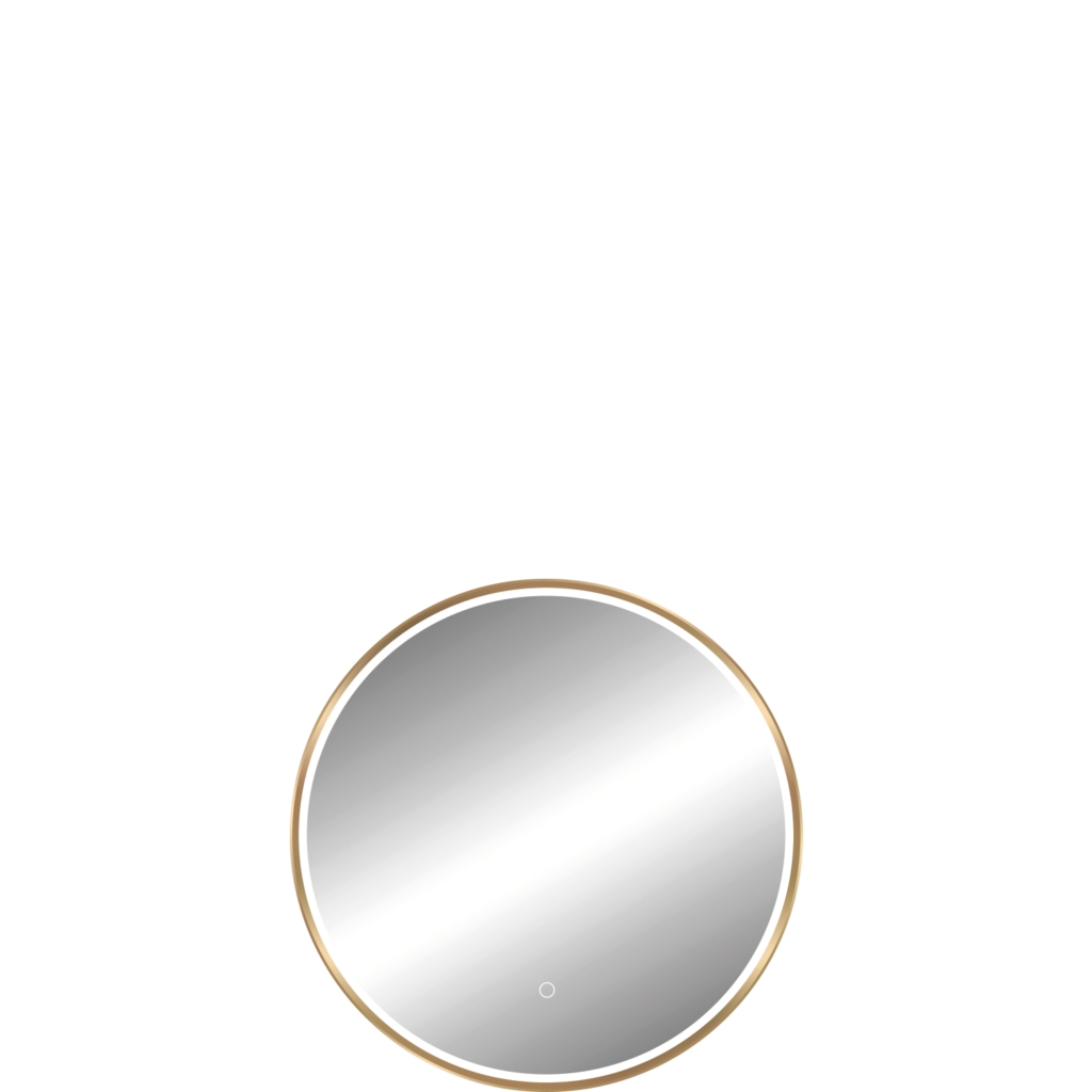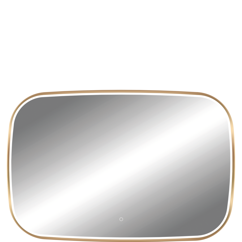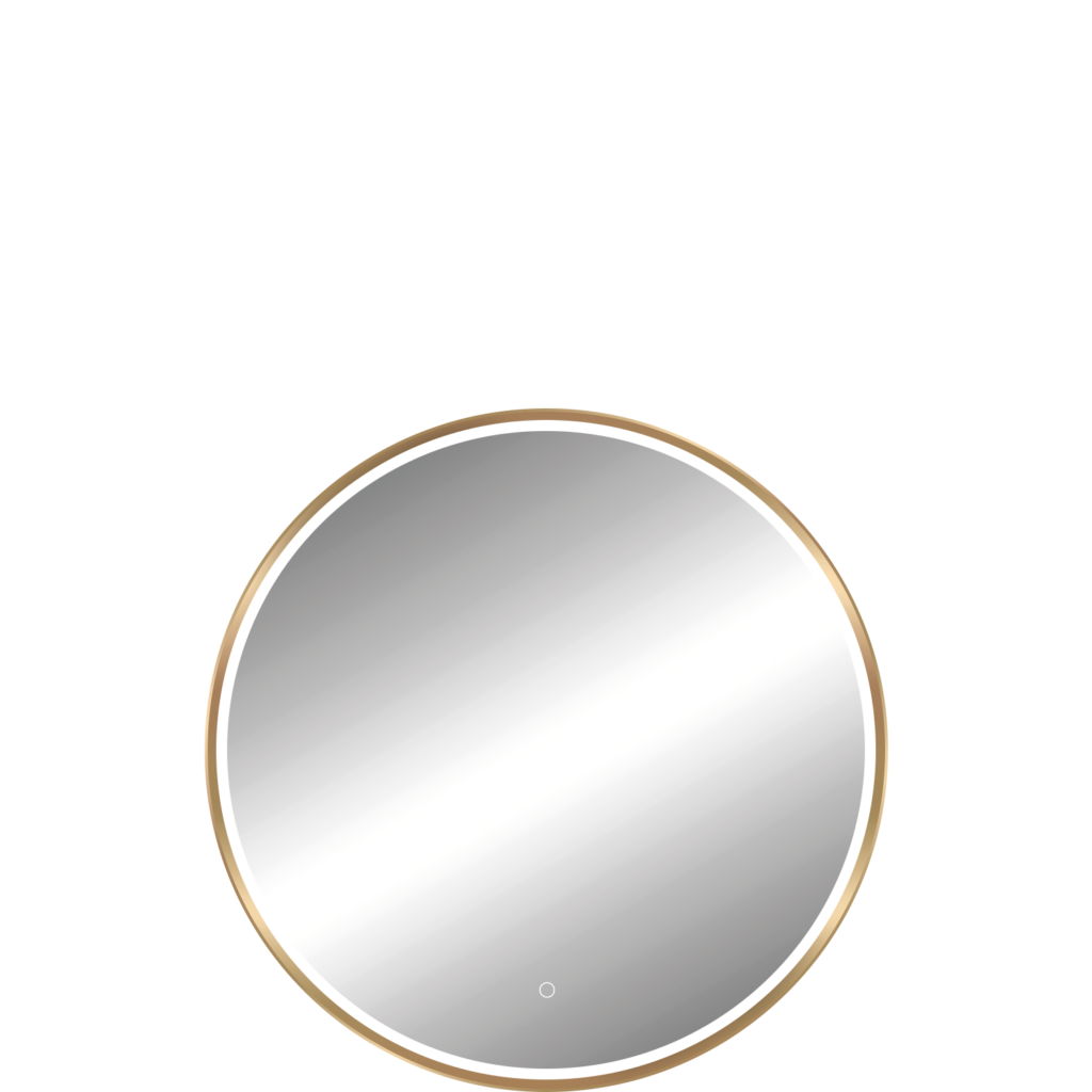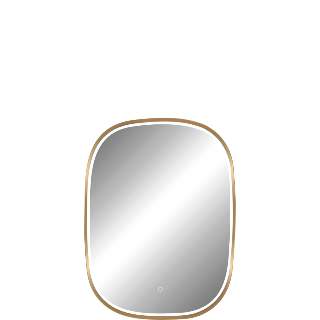 Miroirs avec un cadre en aluminium doré brossé et un éclairage diffusé sous une bande de sablage